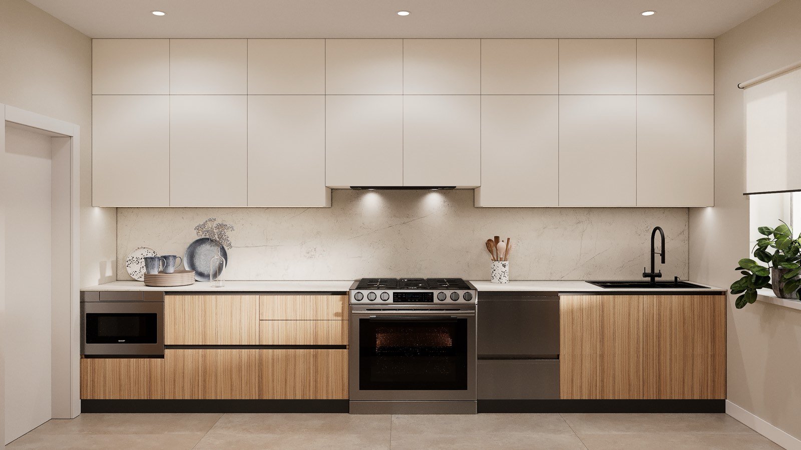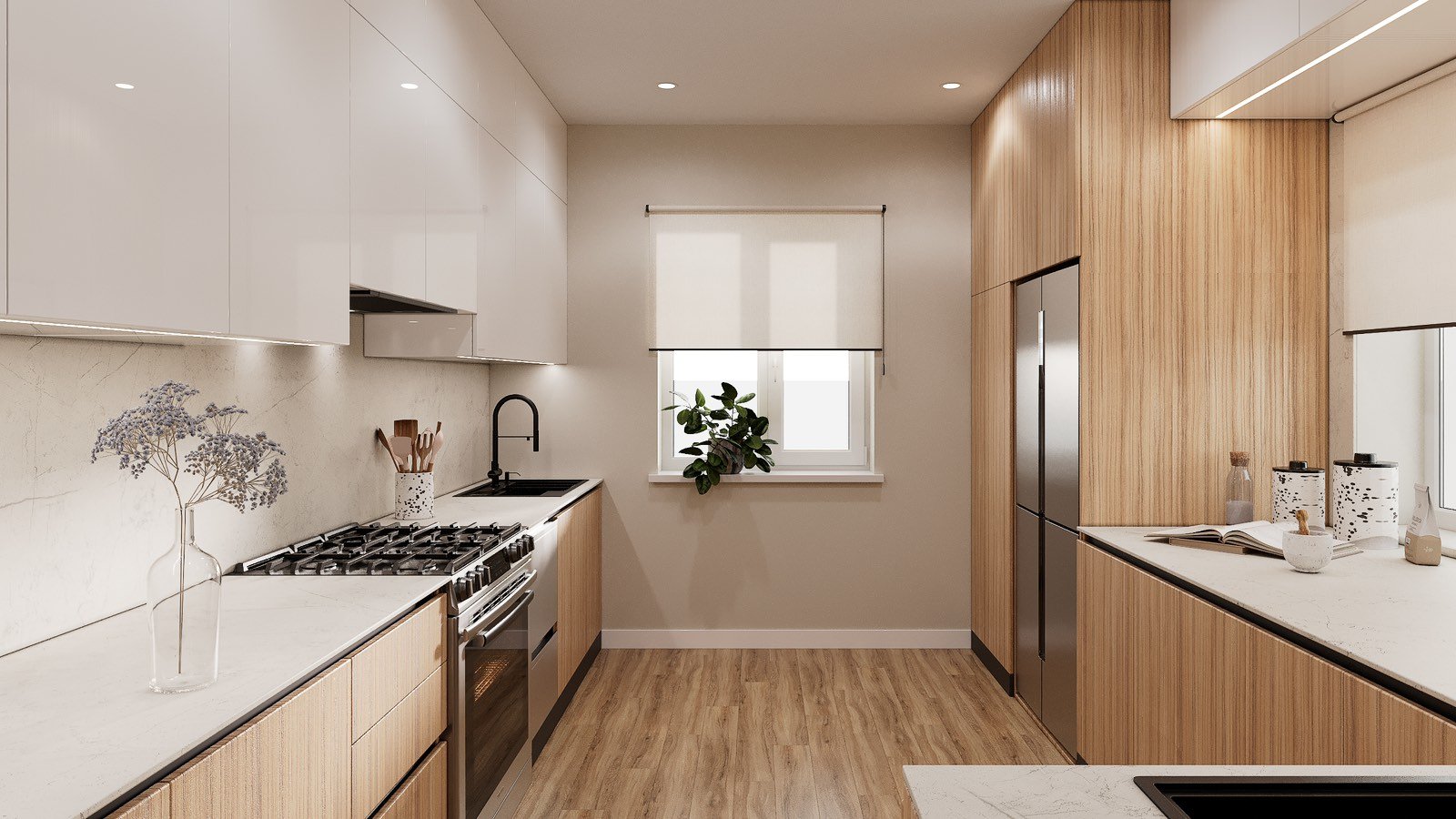 We designed a clean, European-style kitchen with a strong focus on functionality, efficiency, and comfort. The result is a bright, minimalistic, handleless space that feels calm, organized, and easy to use.