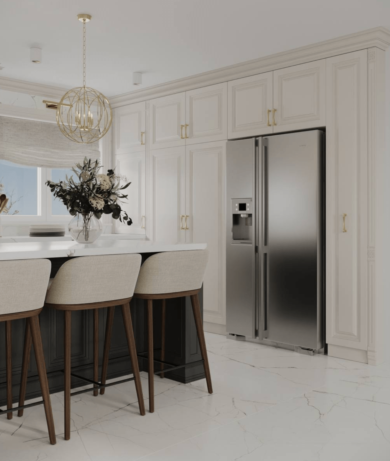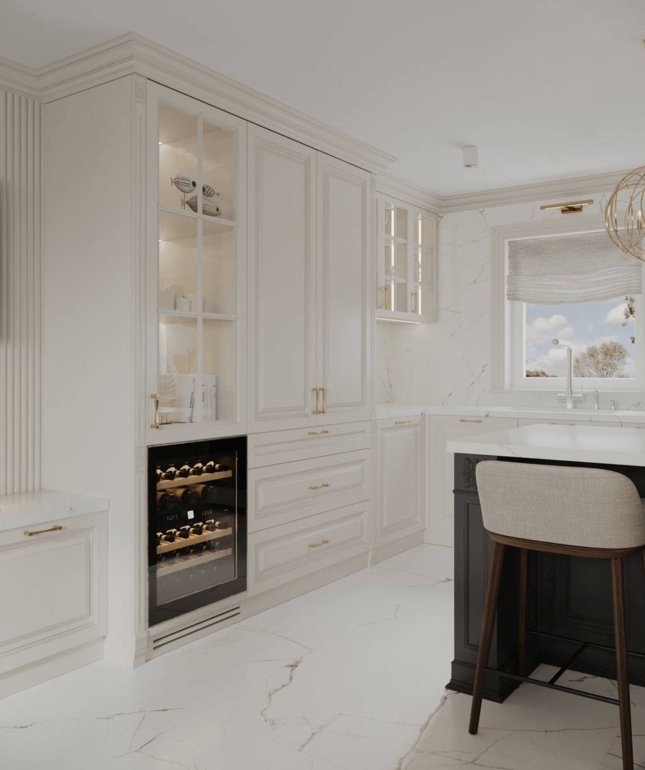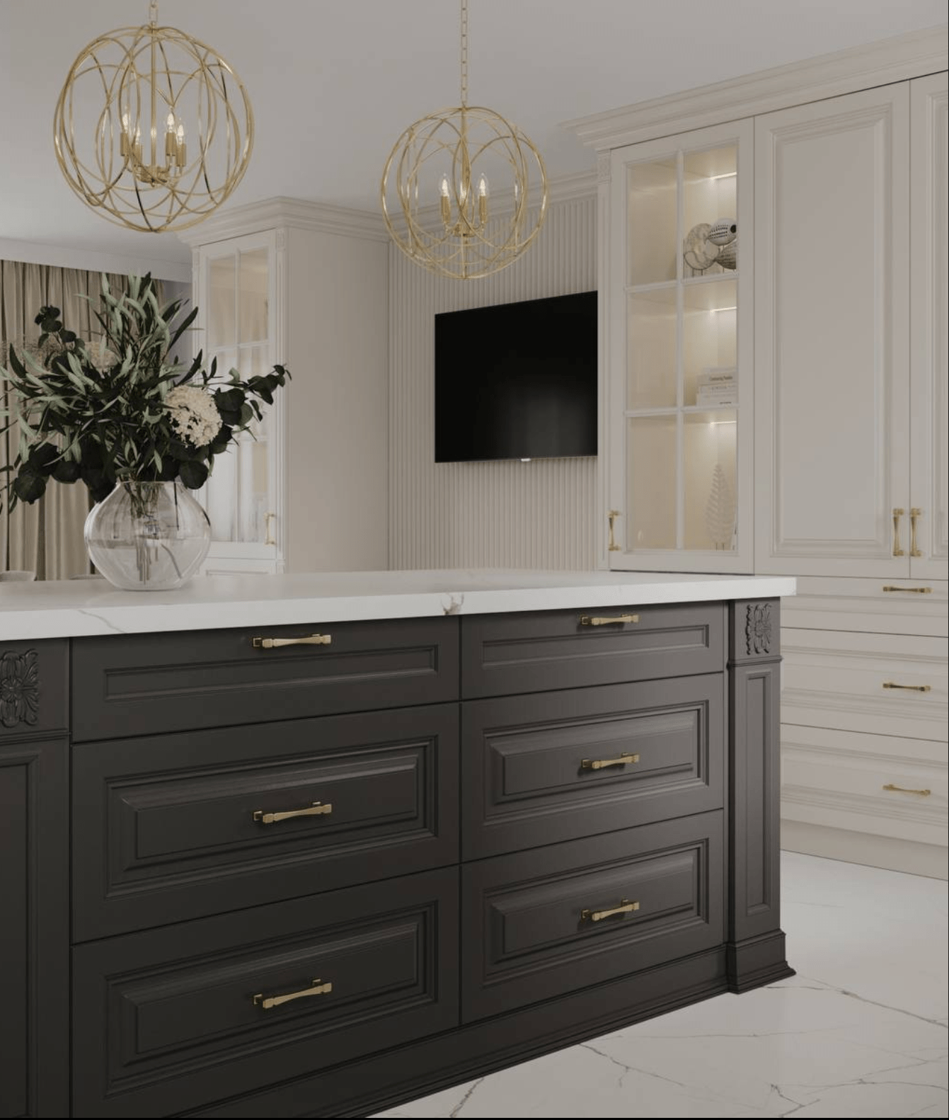 There were two old rooms, we needed to make one beautiful elegant space in white.